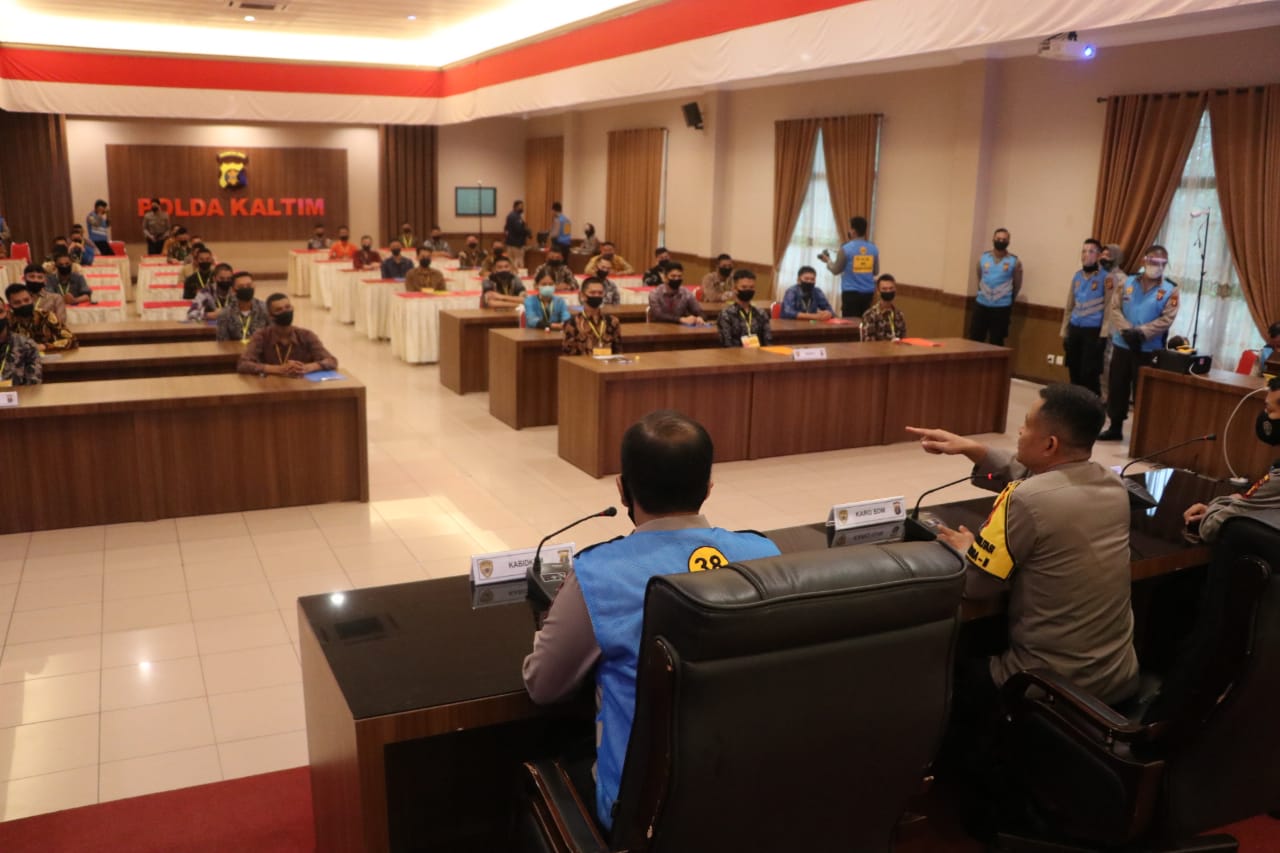 Karo SDM Polda Kaltim Kombes Pol. Marjuki, S.I.K., M.Si., selaku ketua pelaksana penerimaan Polri tahun 2020 Panda Kaltim menjelaskan disituasi Pandemi Covid-19, Polda Kaltim tetap menggelar seleksi dengan mengutamakan protokol Kesehatan.Sebanyak 45 calon taruna Akademi Kepolisian (Akpol) TA. 2020 di Kalimantan Timur, melaksanakan ujian tes Psikologi dan dalam Kegiatan ujian psikologi tersebut mendapat pengawasan ketat dari internal Polri dan Eksternal.