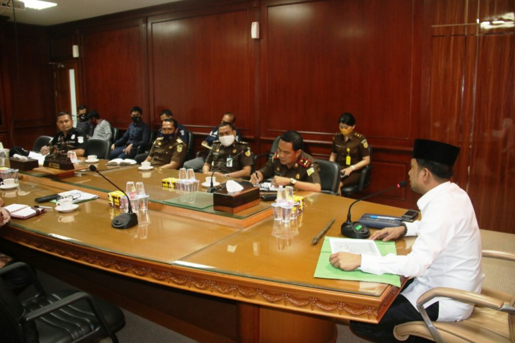 lensabalikpapan.com/- PENAJAM, – Bupati Penajam Paser Utara (PPU) Abdul Gafur Mas’ud (AGM) pimpin pertemuan bersama jajaran Kejaksaan Negeri (Kajari) dan Kepolisian Resort PPU yang digelar di Aula lantai III Kantor Bupati. Pertemuan ini digelar dalam rangka pembahasan persoalan sengketa lahan milik Pemda khususnya yang berada di sisi kiri dan depan Kantor Bupati PPU, Kamis, (23/7) sore.