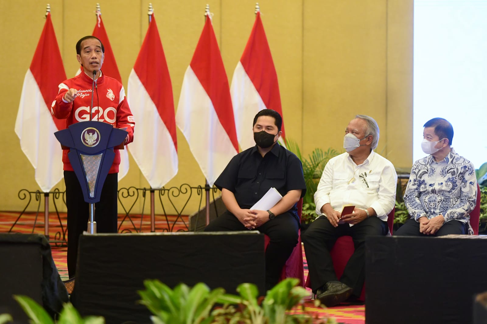“Dalam penganggaran di APBD Bapak/Ibu ubah semuanya tidak seperti pada waktu yang normal dulu, jangan business as usual APBD harus bisa kita create disesuaikan, kuncinya cuma satu kecepatan kita untuk menyesuaikan,” jelas Presiden.