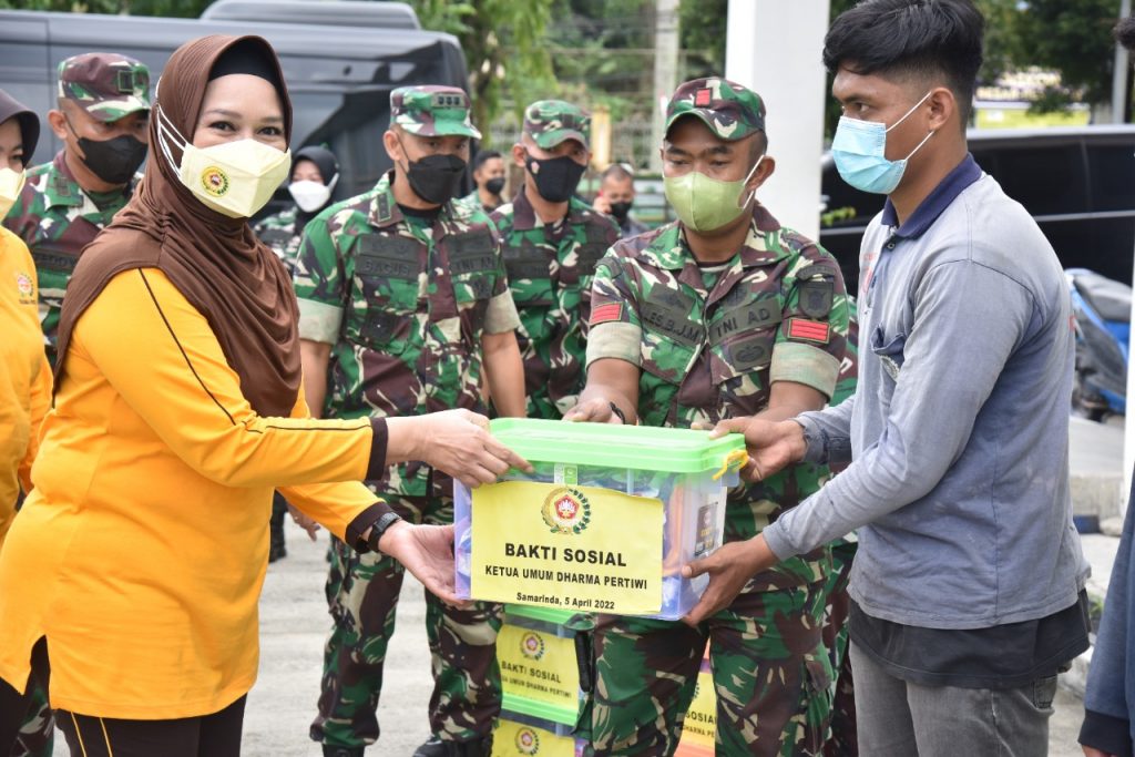 Baksos HUT Persit KCK ke-76, Ketua Persit KCK Daerah VI/Mlw dan Ketua Bhayangkari Daerah Kaltim bagikan sembako