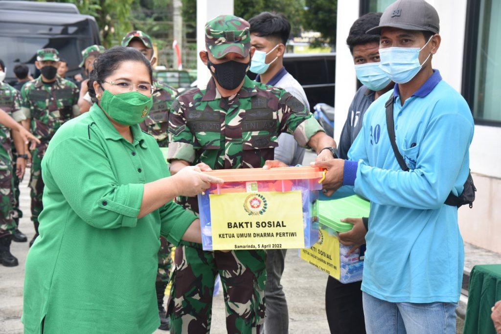 lensa-balikpapan.com/- Samarinda — Dalam rangka HUT Persit Kartika Candra Kirana ke-76, Ketua Persit Kartika Chandra Kirana (KCK) Daerah VI/Mulawarman, Ny. Dewi Teguh Pudjo Rumekso bersama Ketua Bhayangkari Daerah Kaltim, Ny. Ade Imam Sugianto melaksanakan Bhakti Sosial dengan memberikan bantuan sembako sebanyak 500 paket kepada masyarakat kurang mampu di sekitar Pelabuhan Sungai Kunjang dan Masyarakat di Loa Kumbar, Kel.Loa Buah, Kec. Sungai Kunjang, Kota Samarinda, Selasa (5/4/2022).