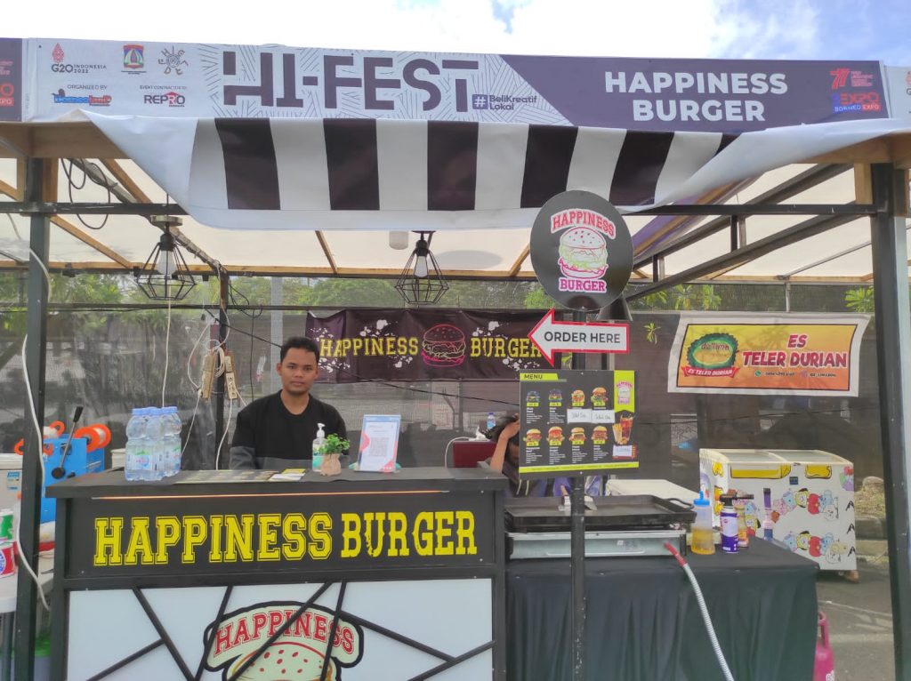 “Dani Owner Happiness Burger, mulai buka pada tahun 2018 yang berkonsepkan resto yang menghadirkan berbagai macam olahan burger,” ujar karyawan Happiness Burger, M Ali.