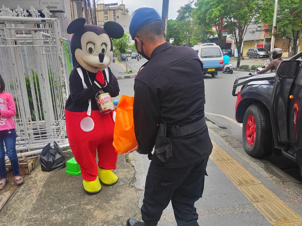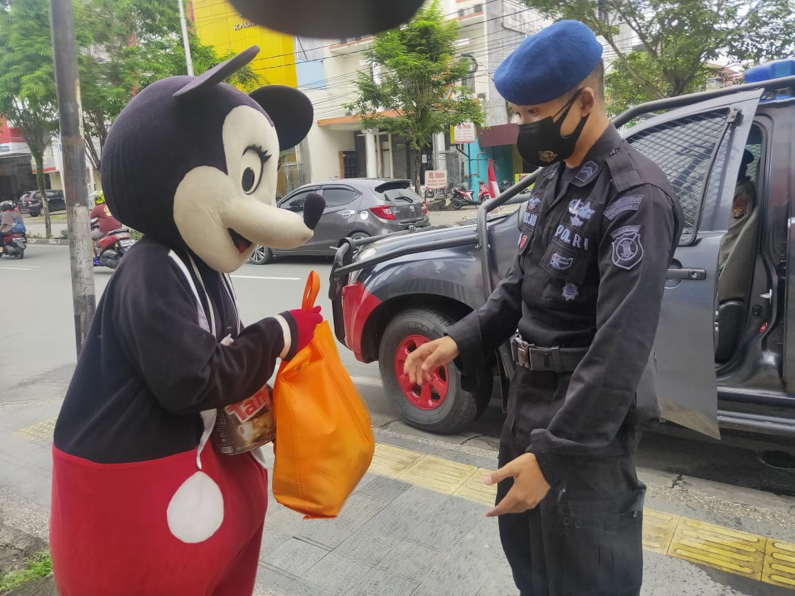 “Untuk masyarakat yang kurang beruntung di jalan kita bagikan. Mudah-mudahan walaupun sedikit bisa meringankan beban mereka,” ujar Kombes John Huntal Sarjananto Sitanggang.