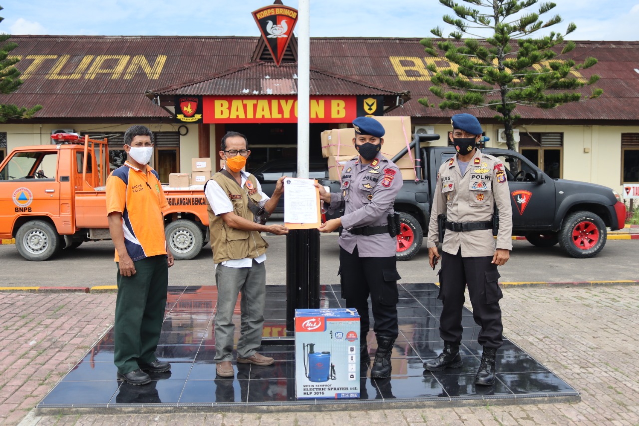 Lensa-balikpapan-/ Guna untuk menunjang kinerja operasional Batalyon B Pelopor Satuan Brimob Polda Kaltim menerima bantuan dari BPBD Provinsi Kaltim berupa Alkes dan APD dalam rangka Penanganan Penanggulangan dan Pencegahan Covid-19 T.A. 2021.