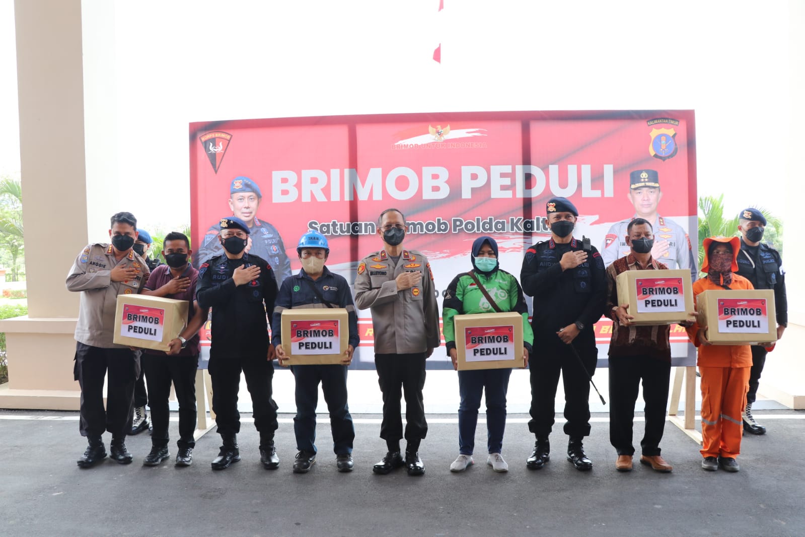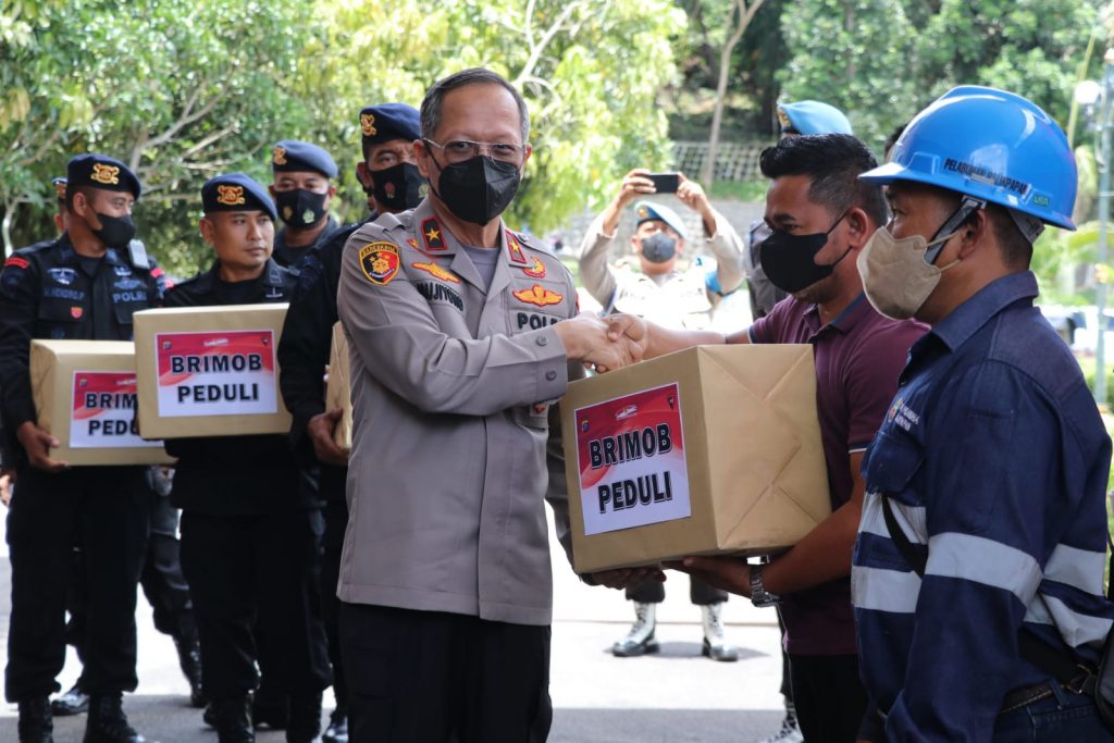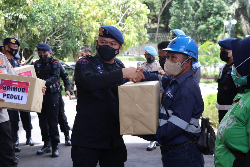 Kegiatan Bhakti Sosial tersebut dipimpin oleh Wakapolda Kaltim Brigjen Pol. Drs. Mujiyono, S.H, M. Hum bersama dengan Wadankor Brimob Irjen Pol. Drs. Setyobudi Moempoeni Harso, SH., M.Hum. dan Dansat Brimob kaltim membagikan 1500 paket sembako kepada perwakilan komunitas nelayan,komunitas bongkar muat semayang balikpapan,komunitas ojek online,supir angkot,dan tenaga kebersihan
