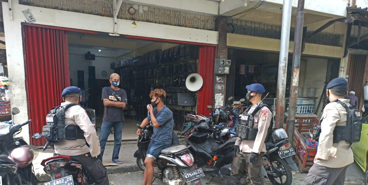 Melalui Patroli Motor, Personel dari Batalyon A Pelopor mengunjungi beberapa titik keramaian berkumpulnya masyarakat yang sedang melaksanakan kegiatan. Satu Regu Patroli Brimob kali ini berdialog bersama masyarakat di Terminal Balikpapan Permai dan Pasar Baru Balikpapan. Dengan ramah dan humanis personel menyampaikan himbauannya untuk selalu memperhatikan protokol kesehatan di tempat umum.