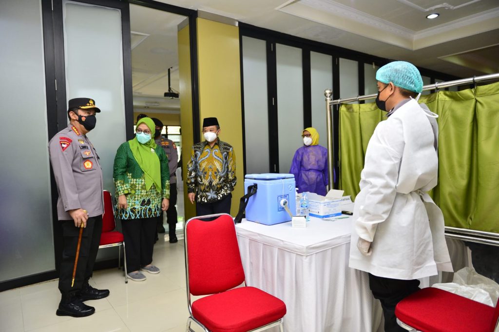 lensa-balikpapan.com/- Jakarta – Kapolri Jenderal Listyo Sigit Prabowo meninjau langsung vaksinasi massal Covid-19 di Gedung Pusat Dakwah Muhammadiyah, Menteng, Jakarta Pusat, Kamis (29/7/2021). Kegiatan ini merupakan kerjasama antara PP Muhammadiyah dengan Polri dan Dinkes Provinsi DKI.