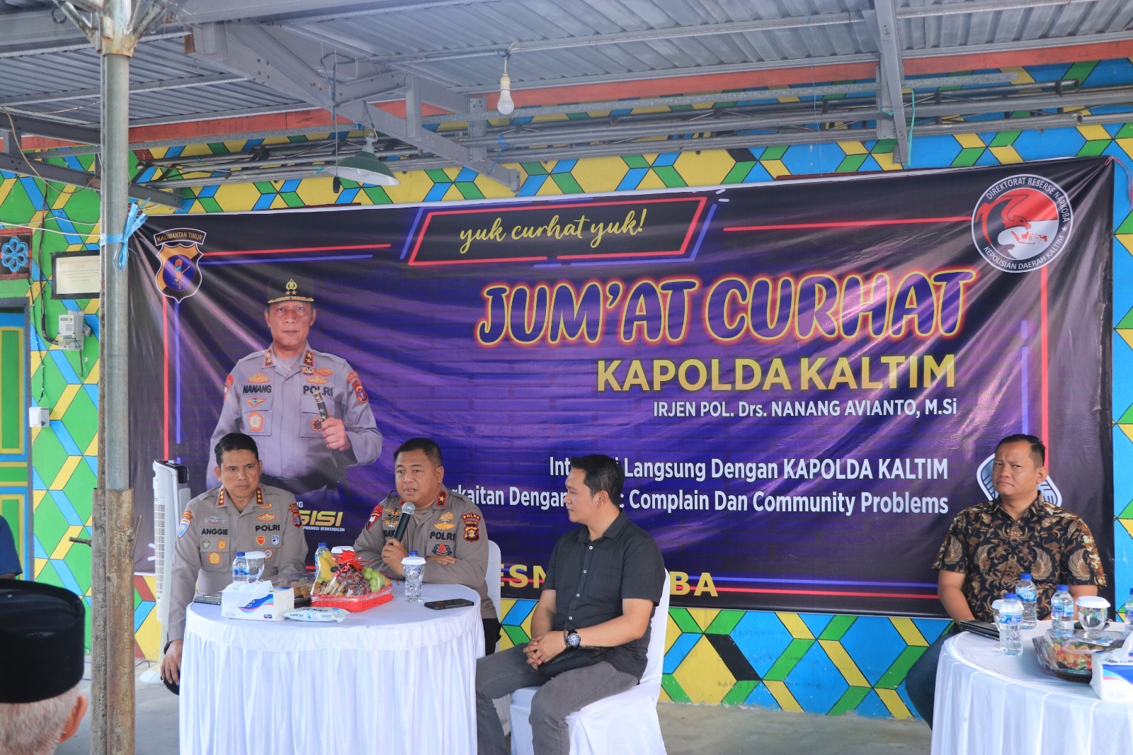 Wakapolda Kaltim menjelaskan kegiatan Jumat Curhat merupakan program Polri sebagai sarana silaturahmi dan sebagai wujud interaksi secara langsung Polri dengan Masyarakat untuk mendengarkan saran, kritikan, masukan serta aduan masyarakat kepada Kepolisian.
