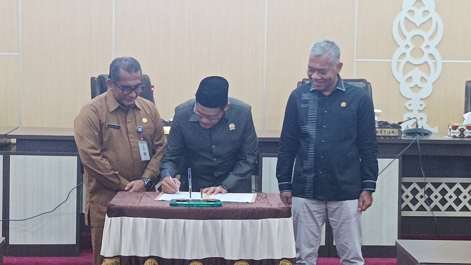 Penandatangan nota kesepakatan ditandatangani oleh Sekretaris Daerah (Sekda) Kota Balikpapan, H. Muhaimin dan Wakil Ketua DPRD Balikpapan, Laisa dan Budiono.