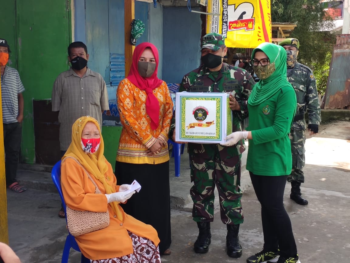 HUT Ke-62 Kodam VI Mulawarman, Jajaran Kodam VI Mulawarman Bagikan 1000 Paket Sembako.