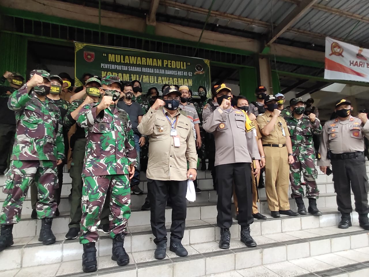 lensabalikpapan.com/- Masih dalam rangkaian HUT Kodam VI Mulawarman Ke-62 Mulawarman Peduli, Kodim 0905 Balikpapan bersama Forkopimda laksanakan karya bakti penyemprotan disifektan.