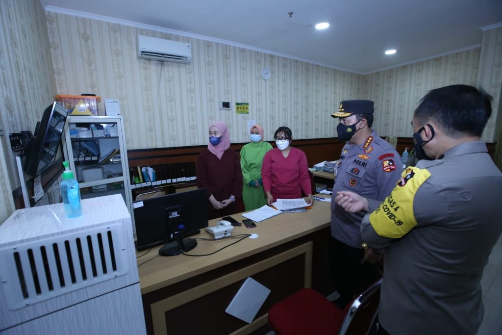Kapolri mengecek langsung ruangan yang digunakan untuk ruang perawatan pasien Covid-19 mulai dari lantai Basement hingga lantai 4, disetiap ruangan Kapolri mengecek proses dan alur periksaan yang dilakukan oleh Dokter dan perawat, dan tak lupa Kapolri mengucapkan terima kasih banyak atas dedikasinya dalam merawat pasien serta Kapolri memberikan semangat kepada para Dokter dan Perawat yang bertugas.