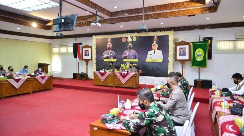 Lensa-balikpapan-/ Panglima TNI Marsekal Hadi Tjahjanto bersama Kapolri Jenderal Listyo Sigit Prabowo memimpin rapat penanganan dan pengendalian Covid-19 bersama dengan Forkopimda Bantul dan Sleman, Daerah Istimewa Yogyakarta (DIY), Minggu (8/8/2021).