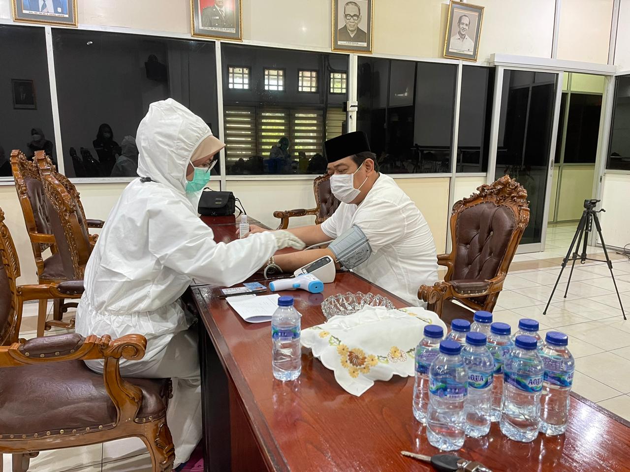 Lensa-balikpapan-/ Ketua DPRD Balikpapan Abdulloh S.Sos mendapatkan suntik Vaksin Covid 19 di Ruang rapat gabungan DPRD Balikpapan pada pukul 12.00 wita . Minggu (31/1/21)