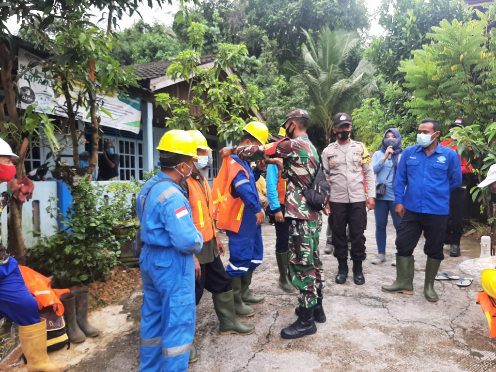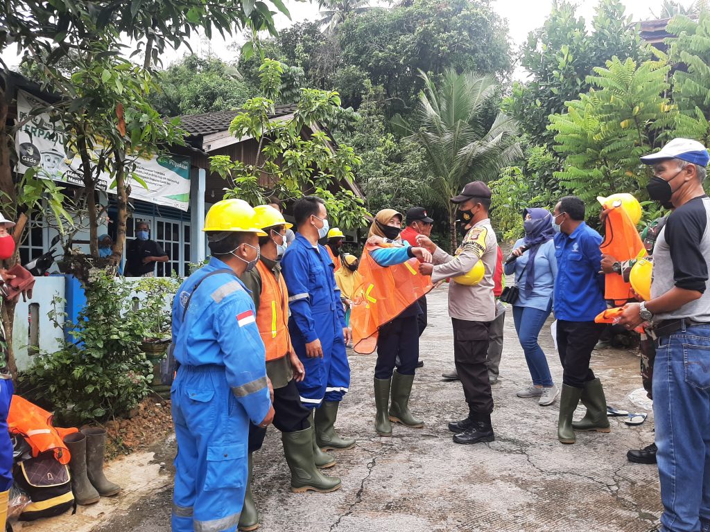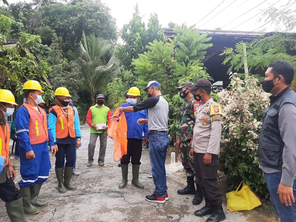 pelaksanaan kegiatan padat karya tunai ini protokol covid tetap diterapkan, mulai dari pengukuran suhu tubuh pekerja sebelum pekerjaan dimulai, menjaga jarak selama proses pekerjaan berlangsung sampai pada pemakaian APD untuk mencegah kemungkinan terjadinya kecelakaan kerja jelasnya”.