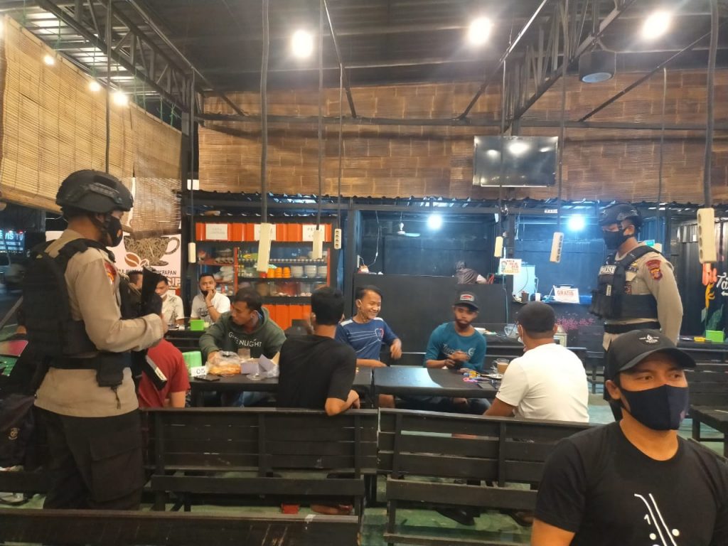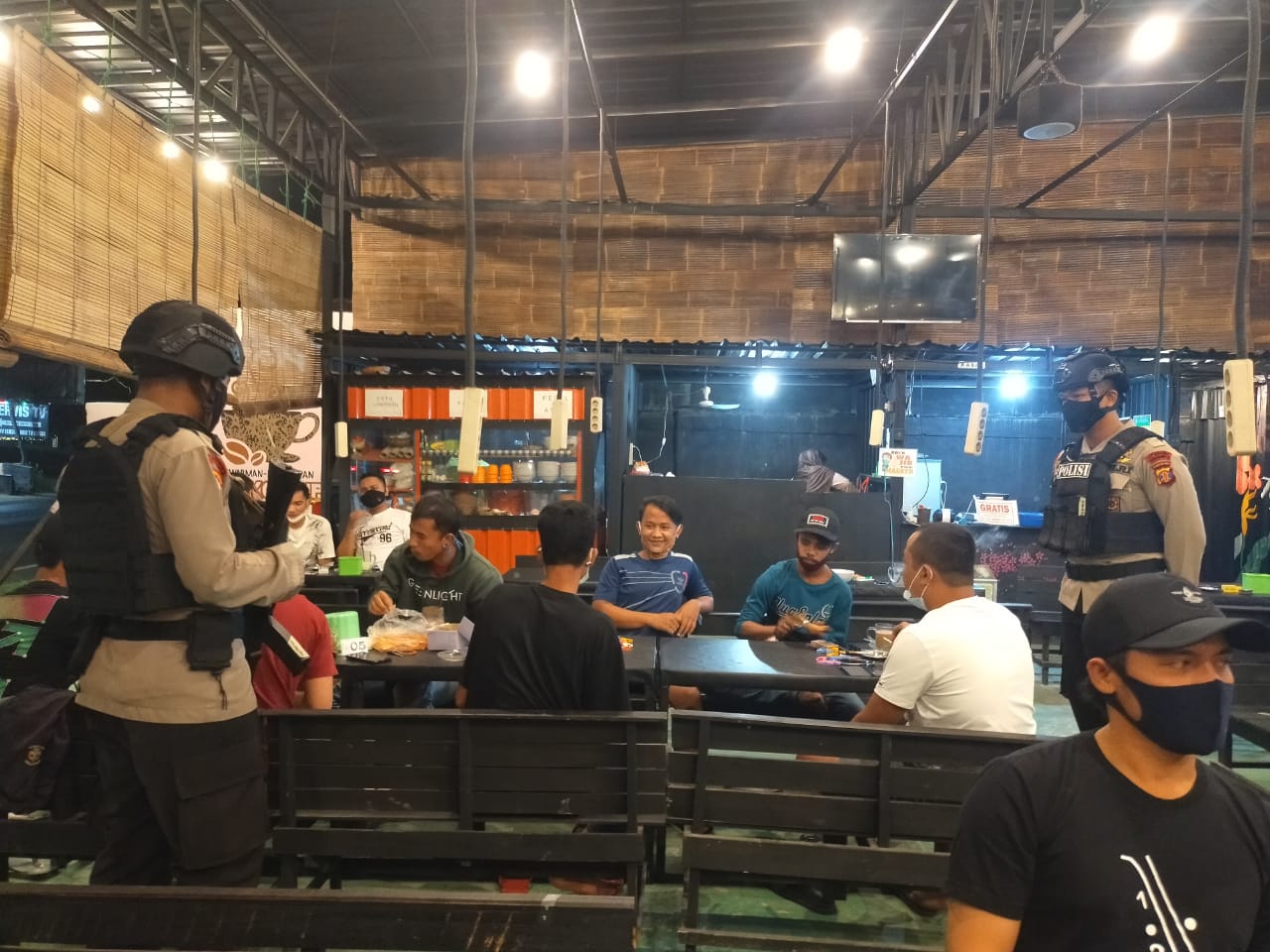 Malam Minggu, Patroli Brimob Kaltim Terus Imbau Warga Disiplin Protokol Kesehatan