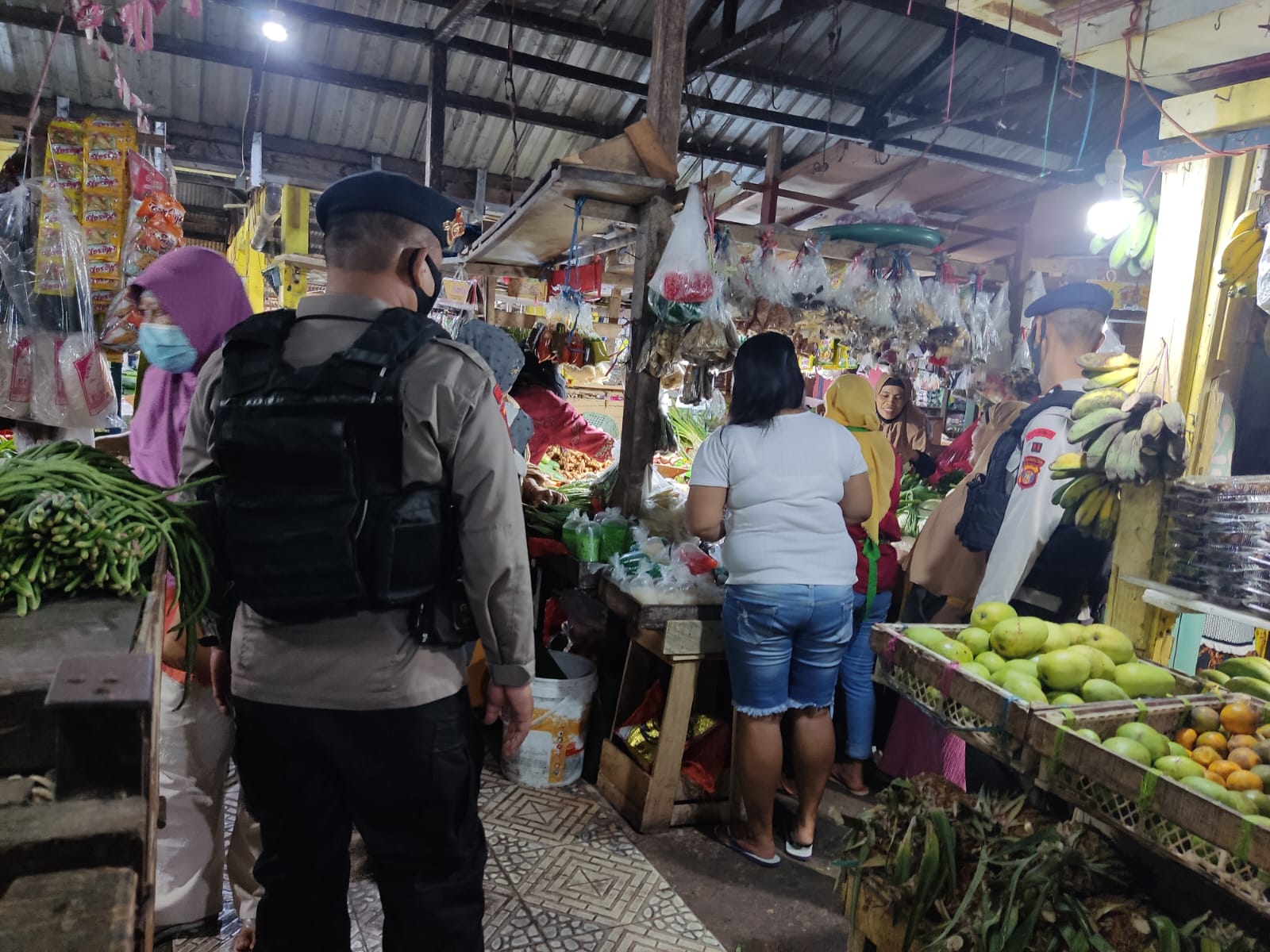 “Berbeda dengan suasana pasar sebelum Hari Raya Idul Fitri, pengunjung pasar membludak dan berdesak-desakan, kini suasana pasar pada hari ini tidak terlalu ramai pengunjung,” ujar Kombes Andy Rifai.