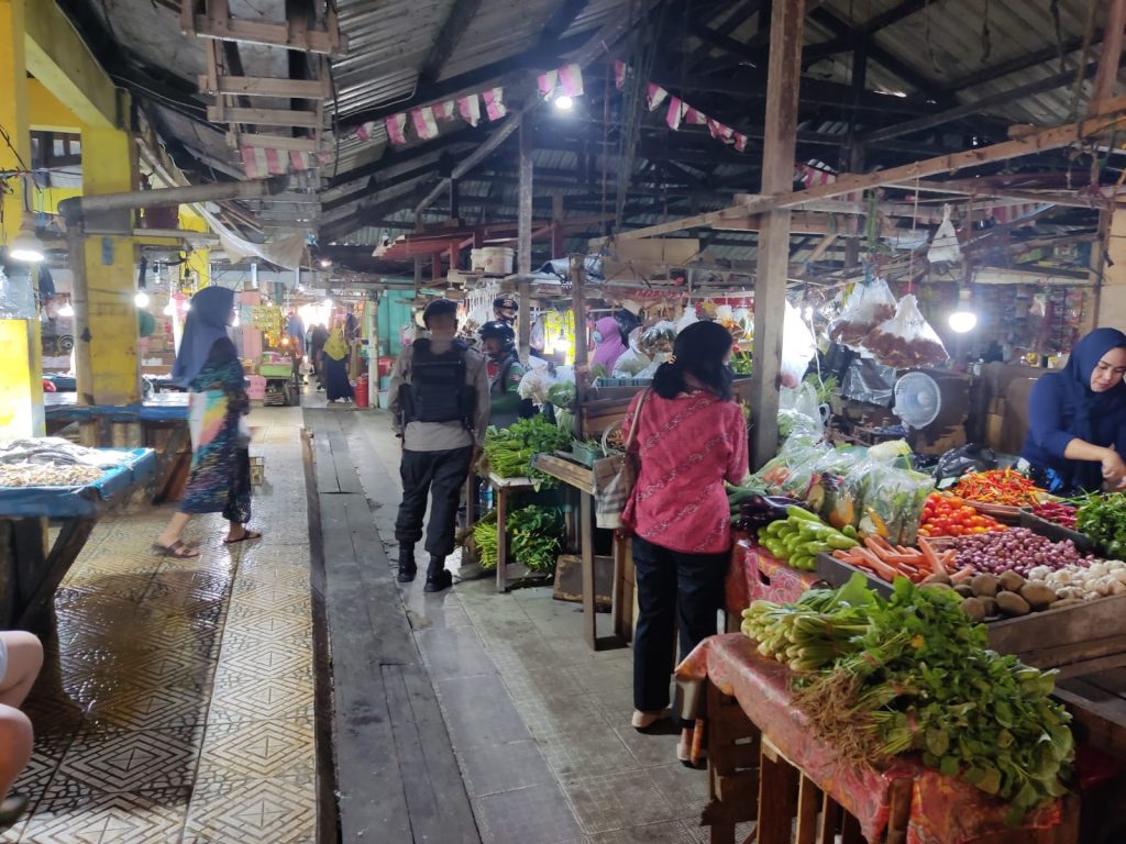 Pasca Lebaran,Patroli Brimob Polda Kaltim Pantau Ketersediaan Bahan Pokok di Pasar