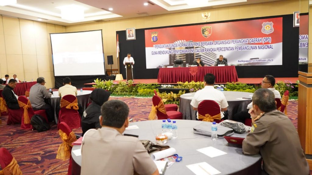 Lensa-balikapapan.com -/ Ditresnarkoba Polda Kaltim Kombes Pol Rickynaldo Chairul, S.I.K., Menjadi Narasumber dalam Kegiatan Pembinaan PPNS dengan Tema Penguatan Fungsi Korwasbin PPNS Bersama Organisasi Perangkat Daerah (OPD) Guna Mendukung Penyidikan PPNS Dalam Rangka Percepatan Pembangunan Nasional. Kamis (23/2/2023).