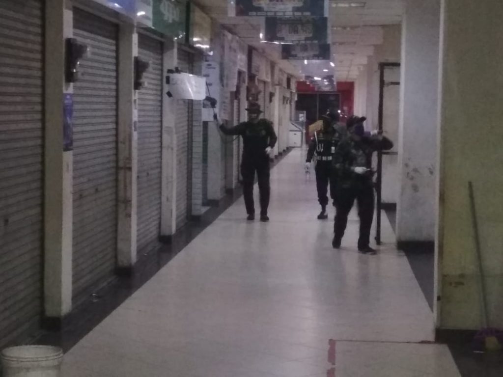 Petugas Rapak Plaza Ramayana lakukan penyemprotan disinfektan di seluruh lapak pedagang