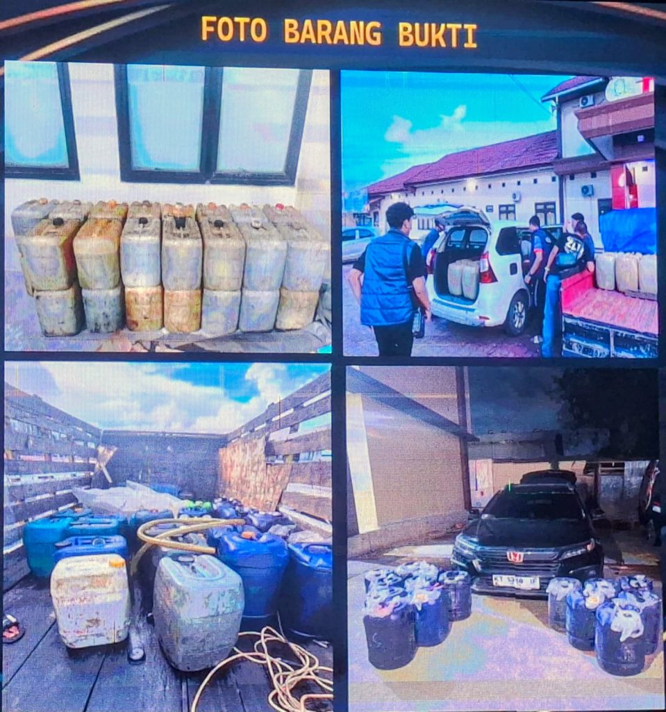 Polisi turut mengamankan sejumlah barang bukti, di antaranya delapan unit kendaraan roda empat, lima drum besi, dua unit pompa, serta ratusan jeriken. Selain itu, diamankan pula BBM bersubsidi jenis pertalite dan biosolar dengan total mencapai sekitar 5.280 liter.