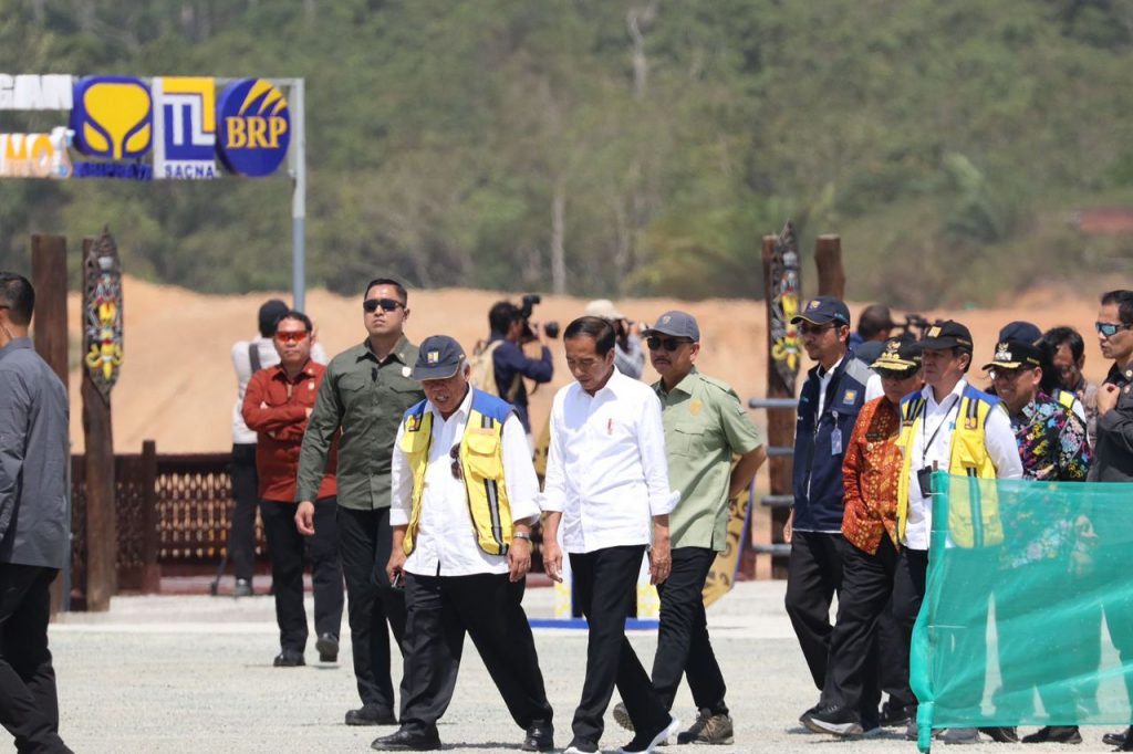 Lensa-balikpapan -/ Presiden Ir. H. Joko Widodo kunjungi lokasi Pembangunan Bendungan Sepaku Semoi di Kab. Penajam Paser Utara, Kamis (21/9/2023).