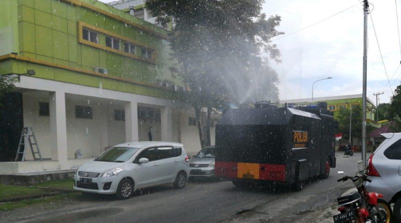 “Kegiatan ini akan kita laksanakan setiap hari dengan menurunkan mobil water canon yang menyemprotkan setidaknya 6000 liter cairan desinfektan,” kata John Huntal Sarjananto Sitanggang.