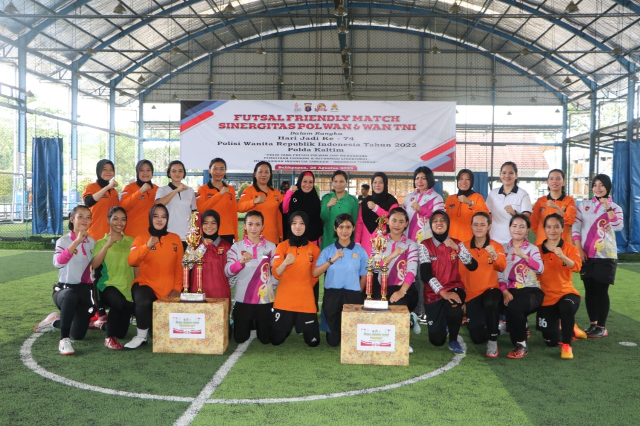 Lensa-balikpapan-/ Dalam suasana yang hangat dan kompak, ratusan prajurit gabungan Wanita TNI dan Polwan se-Kaltim hadir dan berkumpul bersama dalam rangka Futsal Friendly Match di Lapangan Global Balikpapan, Jumat (26/8/2022)