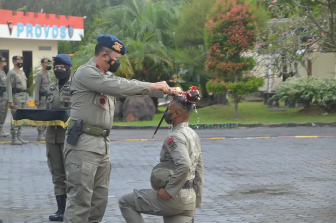 Sebanyak 8 Bintara remaja lulusan SPN Jonggon Polda Kaltim, mengikuti acara tradisi dan menjadi keluarga baru di Satbrimob Polda Kaltim.