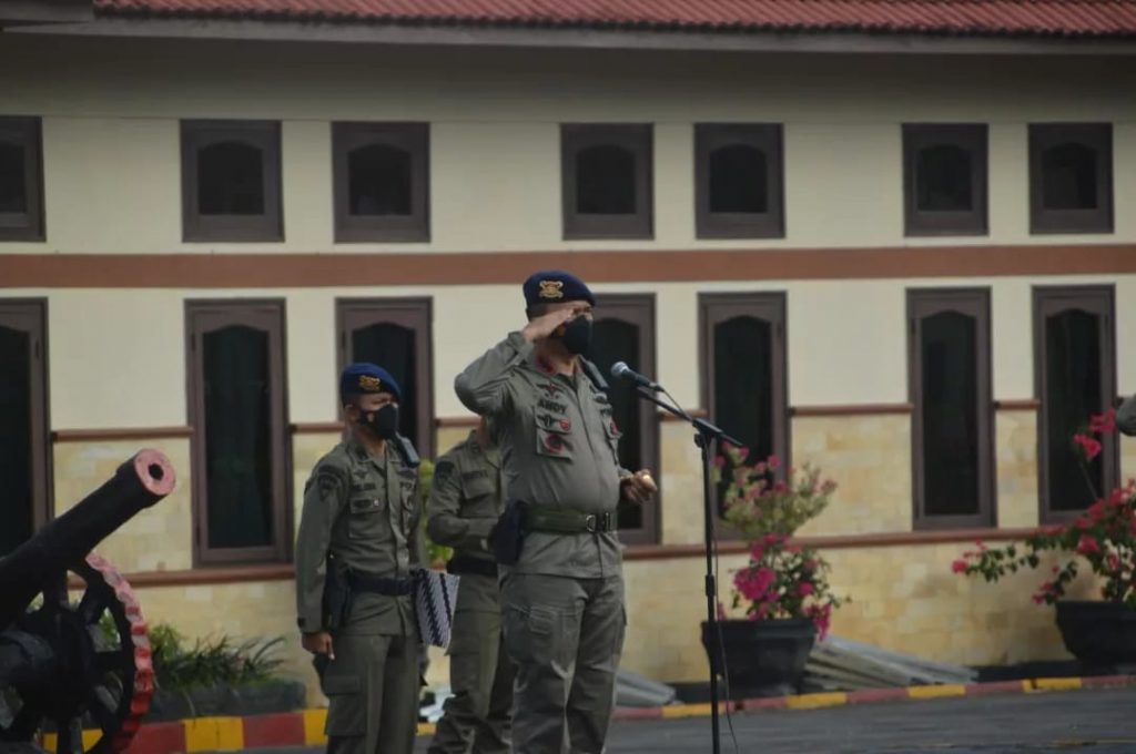 Lensa-balikpapan-/ Komandan Satbrimob Polda Kaltim Kombes Pol. Andy Rifai, SIK, MH memimpin acara tradisi penerimaan Bintara penempatan pertama Satbrimob Polda Kaltim Tahun 2022, bertempat dilapangan hitam Mako Satbrimob Polda Kaltim, Stal Kuda, Balikpapann, Selasa (9/8/2022).