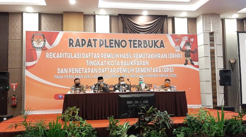 Lensa-balikpapan.com/- Komisi Pemilihan Umum (KPU) Melakukan Rapat Pleno Terbuka , Rekapitulasi Daftar Pemilih Hasil Pemutakhiran (DPHP) Tingkat Kota Balikpapan , Serta Penetapan Daftar Pemilih Sementara (DPS) Pada Pemilihan Walikota dan Wakil Walikota Balikpapan ,Minggu (13/09/20)