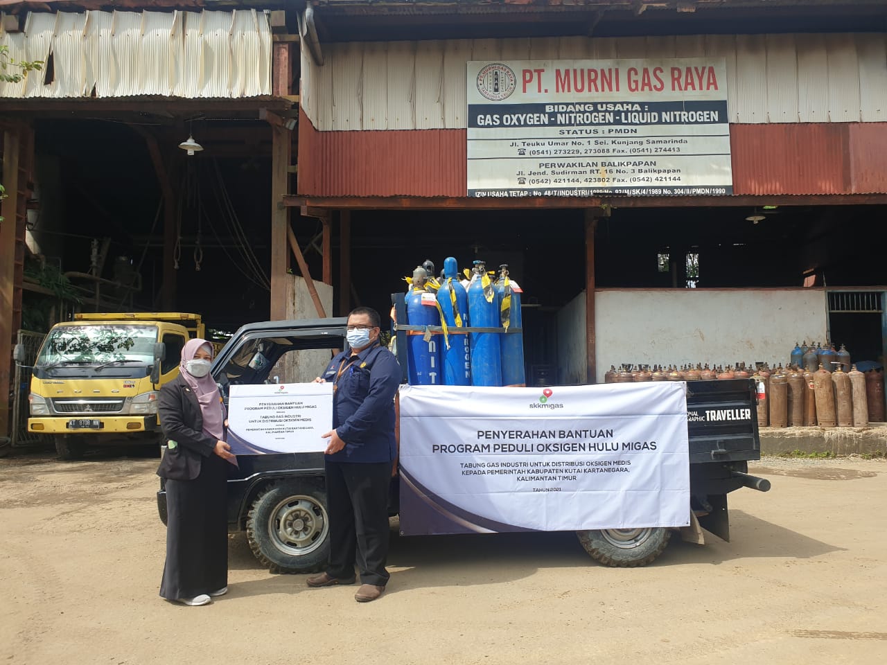Penyerahan sebanyak 23 tabung gas industri tersebut telah dilakukan pada hari Selasa (31/8) yang berlokasi di area PT. Murni Gas Raya (MGR), Samarinda. MGR sendiri merupakan pihak yang ditunjuk oleh Dinkes Kukar untuk mengerjakan proses rekondisi tabung gas industri menjadi tabung gas oksigen standar medis. Hadir dalam acara penyerahan tersebut Kepala SKK Migas Kalsul Azhari Idris, Manajer Senior Humas SKK Migas Kalsul Wisnu Wardhana dan pihak Dinkes Kukar yang diwakili oleh Kristina Eka S.