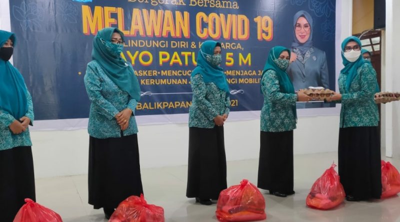 Lensa-balikpapan/- Tim Penggerak PKK Kota Balikpapan menyerahkan bantuan sebanyak 202 paket sembako bagi warga tak mampu yang menjalani isolasi mandiri di rumah.