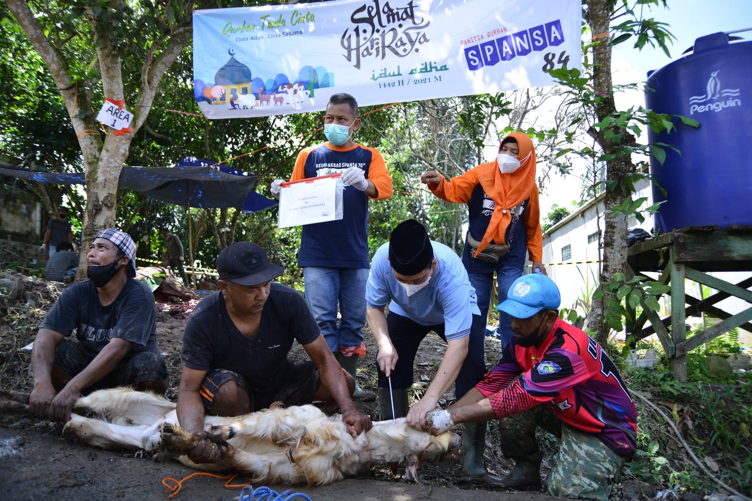 Sementara itu Muhammad Faisal sebagai ketua panitia Qurban mengatakan hewan kurban yang telah disiapkan merupakan hasil kurban dari para alumni SMANSA angkatan 1984, yang mana daging kurban akan dibagikan kepada warga sekitar.