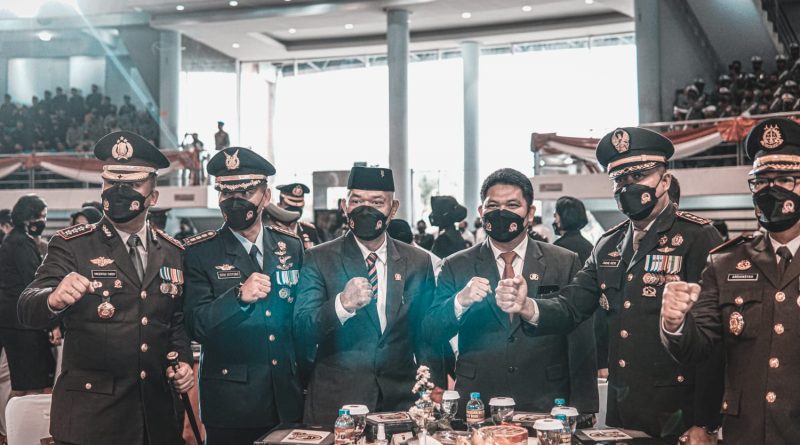 Lensa-balikpapan-/ Wakil Ketua DPRD Kota Balikpapan Budiono beserta Jajaran Forkopimda lainnya menghadiri Upacara dan Syukuran Hari Bhayangkara Ke- 76 yang diselenggarakan Kepolisian Daerah Kalimantan Timur bertempat di Balikpapan Sport Convention Center BSCC DOME .